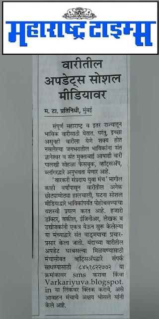 वारीच्या अपडेट्स बद्दल "दैनिक - महाराष्ट्र टाईम्स" ने घेतलेली दखल !